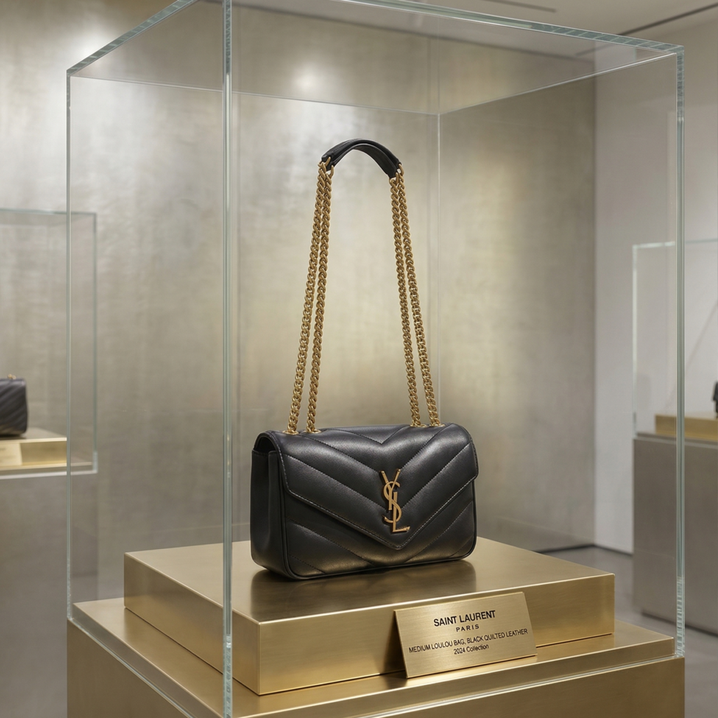YSL LOULOU SMALL IN MATELASSÉ LAMBSKIN BLACK